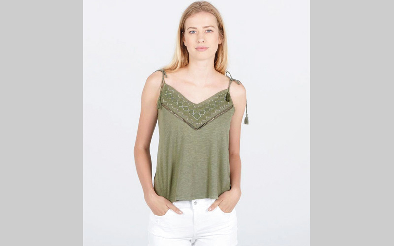 وأضافت آيك أن الكاكي يشهد رواجاً كبيراً هذا الصيف، مشيرة إلى أنه من الصعب تنسيقه؛ لأنه لا يجعل الوجه يشع إشراقاً.