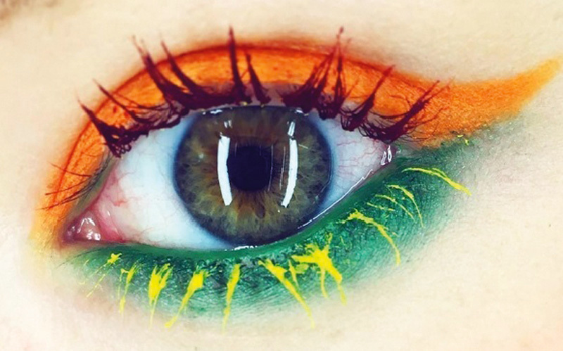 ومَن ترغب في إطلالة جريئة يمكنها استعمال ماسكارا تزهو باللون الأصفر، أما مَن ترغب في إطلالة أكثر هدوءاً، فيمكنها استعمال ماسكارا ذات لون أسود، على أن يتم تطبيق ظلال جفون تزهو بالأصفر أو البرتقالي أو الأخضر.