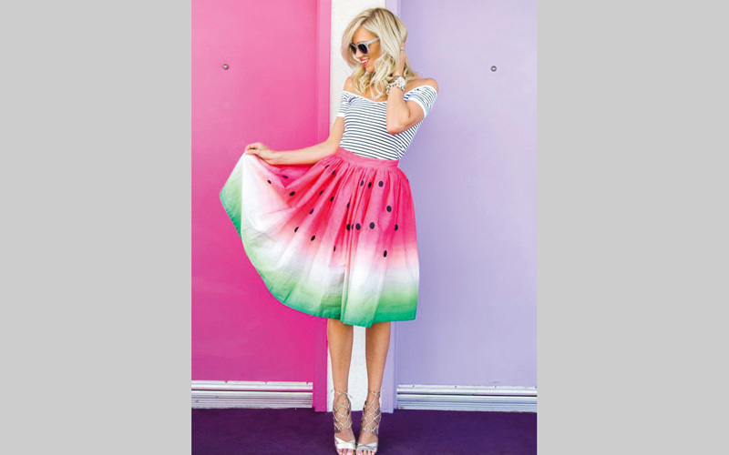 ومَن ترغب في إطلالة صيفية مفعمة بالرقة والأنوثة، فتنصحها «وومان» بتنسيق تنورة أو فستان بمطبوعات الفواكه مع حذاء يزهو باللون الوردي.