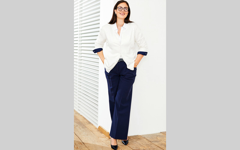 وفي حال ارتداء قطعة فوقية أخرى، فينبغي أن تكون قصيرة. وتكتمل أناقة الإطلالة المريحة مع حذاء ذي كعب عال أو كعب ضخم، وذلك لإطالة القامة بصرياً من ناحية، وكي يظل الحذاء ظاهراً أسفل السروال من ناحية أخرى.