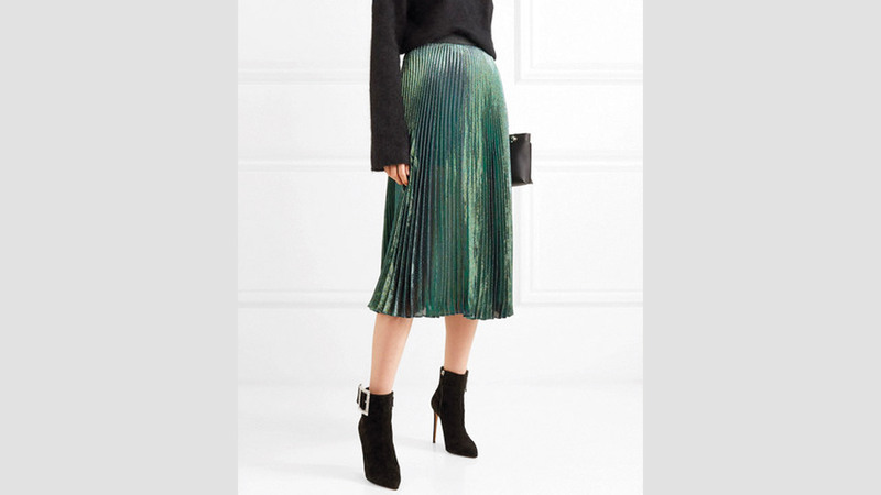 تتألق التنورة البليسيه بالخامات اللامعة لتمنح المرأة إطلالة متلألئة تجعلها نجمة الحفلة. وأوضحت خبيرة الموضة الألمانية، إنيس مايروزه، أن التنورة البليسيه تأتي هذا العام بقصّة متوسطة الطول «ميدي» ومصنوعة من خامات لامعة، مثل اللاميه أو الساتان أو الجلد الميتالك أو المخمل البرّاق، لتضفي على المظهر لمسة جاذبية تنطق بالأناقة والفخامة.