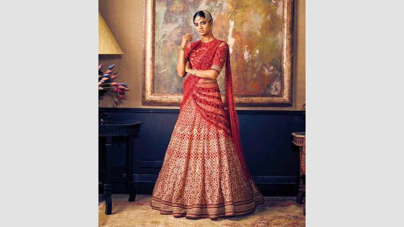 إلى جانب الأزياء المغربية، والإماراتية التقليدية، تحضر تصاميم الزفاف الهندي كواحدة من الخيارات على طاولة العروس الإماراتية لليلة الحنة.