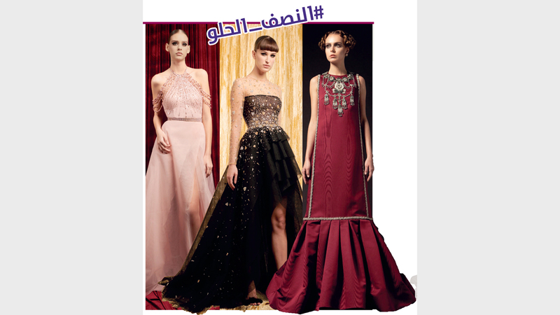 بمهارة صنعته واستخدامه للمنسوجات الفخمة والصور الظلية البهيجة التي تحمل توقيعه مستخدماً الريش والمطرزات الباروكية إلى جانب التول والتفتة الحريريين في أحدث مجموعة له. وأما بالنسبة لجورج حبيقة فإن مجموعته تتعمق في فلسفة الاحتفال، وهي مجموعة من الصور الظلية البراقة والشفافيات الساحرة وخطوط العنق العارية التي تحتوي على الدانتيل والمنسوجات البراقة والمزخرفة، بينما يقدم جورج شقرا أحدث مجموعة ملابس جاهزة تختص بالفتاة المراهقة في عمر العشرينات، وتضم قطعاً من الزخارف الجريئة البراقة، والأسود الداكن وقطعاً من الذهب الأبيض والذهبي المخلوط، ممزوجة بدرجات ألوان نيون حية ومبهجة من اللون البرتقالي والفوشية والأخضر.