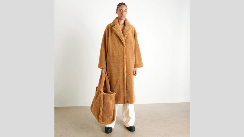 ولإطلالة أكثر أناقة وفخامة، يمكن تنسيق الحقيبة الفرو مع معطف فرو باللون نفسه أيضاً.