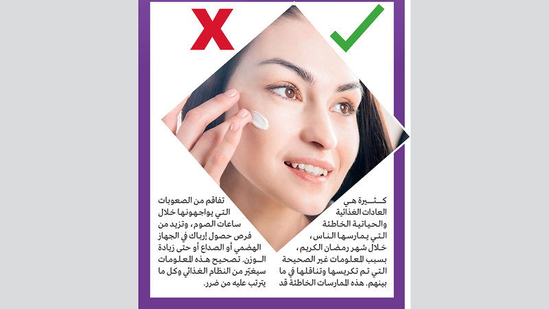 كثيرة هي العادات الغذائية والحياتية الخاطئة التي يمارسها الناس خلال شهر رمضان الكريم، بسبب المعلومات غير الصحيحة التي تم تكريسها وتناقلها في ما بينهم. هذه الممارسات الخاطئة قد تفاقم من الصعوبات التي يواجهونها خلال ساعات الصوم، وتزيد من فرص حصول إرباك في الجهاز الهضمي أو الصداع أو حتى زيادة الوزن.. تصحيح هذه المعلومات سيغيّر من النظام الغذائي وكل ما يترتب عليه من ضرر.