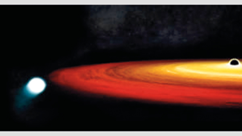 في مشهد كوني درامي، التَهم ثقب أسود جزءاً من نجم بعيد، قبل أن يهرب النجم، في الوقت الحالي على الأقل. ودرس فلكيون بيانات أشعة سينية جمعتها وكالة ناسا ووكالة الفضاء الأوروبية، فوجدوا ما يبدو أنه بقايا نجم أحمر عملاق مرّ بالقرب من ثقب أسود، فجرّده الثقب من طبقاته الخارجية، لكن نجت نَواته (قلبه الذي هو الآن قزم أبيض). لكن يتوقع الفلكيون أن الثقب الأسود سيواصل التهام بقايا النجم شيئاً فشيئاً، حتى لا يَبقى منه إلا جزء لا يُذكر.