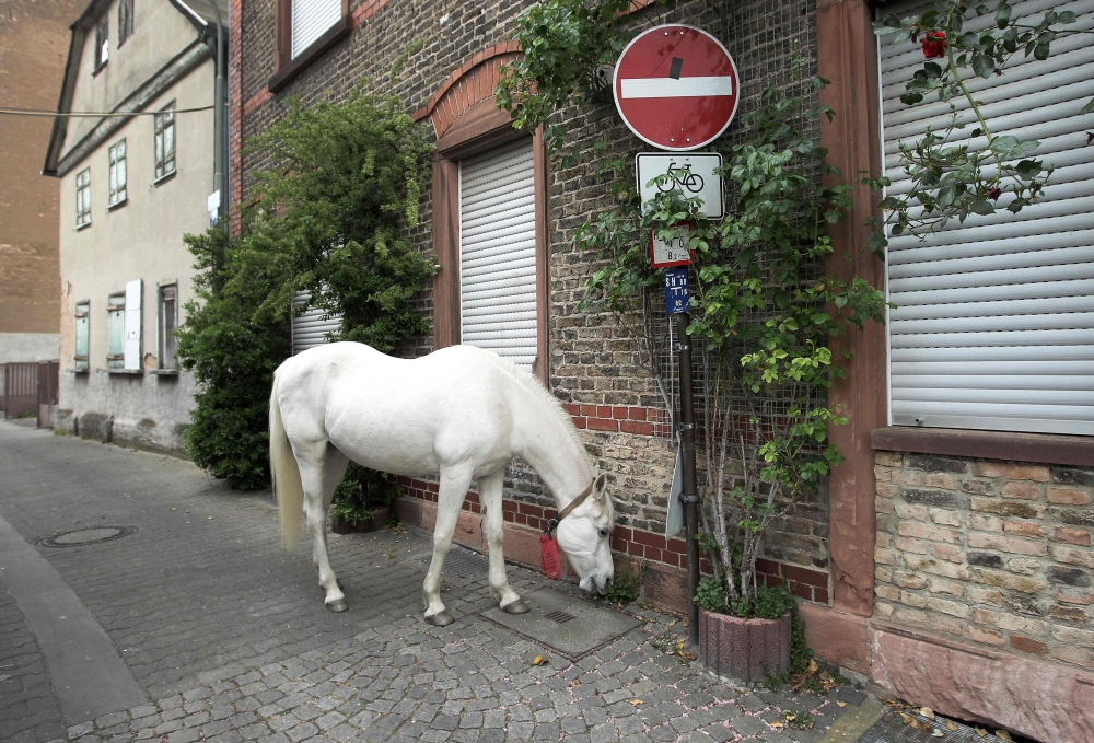 بالصور.. فرس بيضاء ترفع معنويات سكان فرانكفورت المحجورين