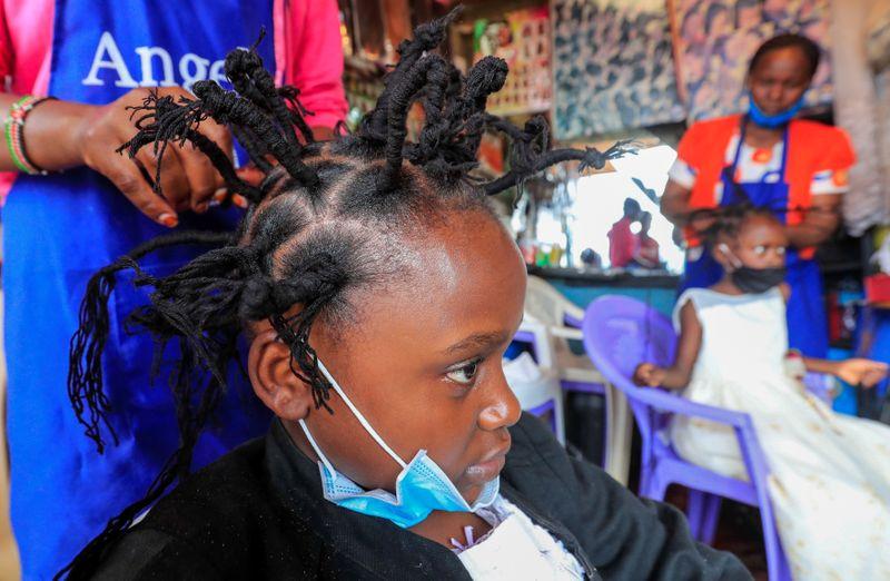 بالصور.."تسريحة كورونا".. موضة تنتشر بين أطفال نيروبي
