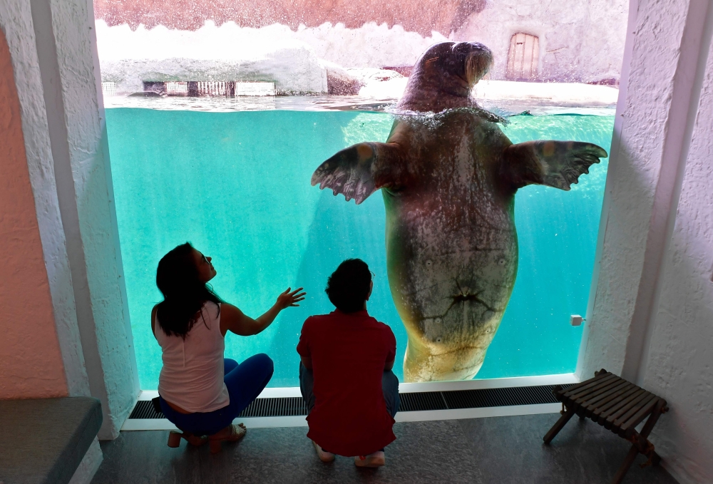 وجهزت الغرف بنافذة زجاجية بعرض 10 سنتيمترات بإمكانها مقاومة ضغط هائل من المياه أو الثقل الكبير لهذه الثدييات المعروفة بأنيابها الطويلة والتي يصل وزنها إلى طنّين.