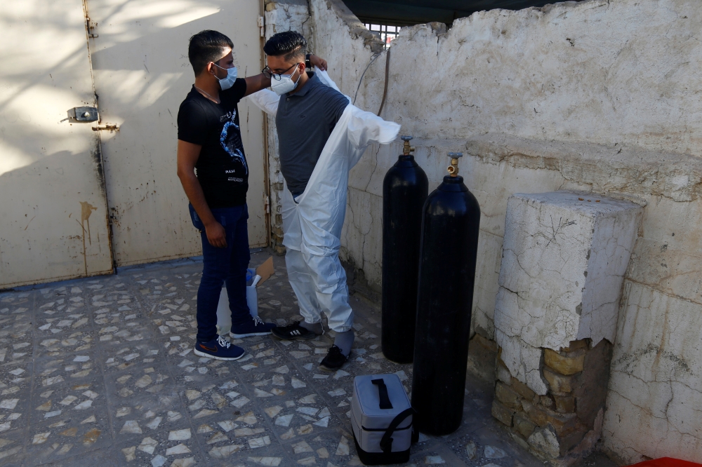 مع زيادة عدد المرضى في المستشفيات، أطلقت مجموعة من المتطوعين العراقيين حملة لتوصيل أسطوانات الأوكسجين والإمدادات الطبية للمرضى الذين يُعالجون من «كوفيد-19» في بيوتهم.