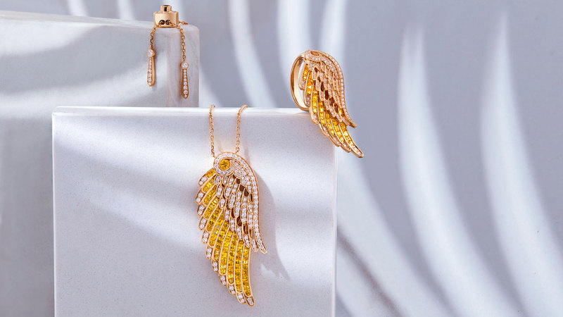 طرحت دار Garrard للمجوهرات إصداراً جديداً من مجموعة «وينجس إمبريس» المفضّلة لدى عشاق العلامة، ويزخر هذا الإصدار بتصاميم فريدة تتألق بأجمل الأحجار الكريمة الملونة. وجاءت هذه الخطوة استجابةً للطلب المتزايد على مجوهرات المجموعة المستوحاة من الألوان المتغيرة لانعكاس الضوء في الكريستال. وأبدعت دار Garrard للمجوهرات في صياغة توليفة لافتة من الياقوت الوردي والأصفر والزبرجد، ضمن نقوش أجنحة الملاك التي ترمز إلى السلام والنقاء والحماية من الخطر.
