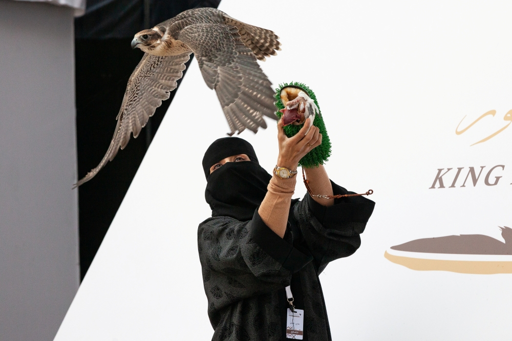عرضت الصقّارة السعودية، عذاري الخالدي، بمهارة طائرها الجارح في مهرجان الصقارة السنوي بالسعودية، وهي المرة الأولى التي تشارك فيها امرأة في هذه المنافسة التي يهيمن عليها الرجال بالمملكة.