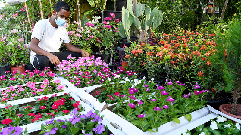 لقطات يفوح منها عبير الورد، وتطل منها رقة الزهور وألوانها الجميلة التي تغمر الحواس بحالة من البهجة.. في أحد المشاتل بالعاصمة أبوظبي.