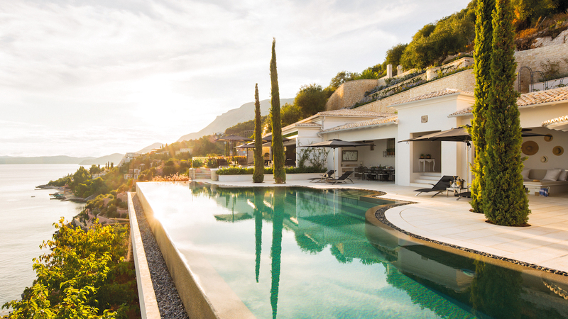 كما يوفّر المنتجع إطلالاتٍ بانوراميةً على الساحلين اليوناني والألباني، ويكتنف فيلا رئيسة وفيلا للضيوف مع ست غرف نوم بحمّامات داخلية، وشرفات وتراسات خاصة مشرفة على البحر. صُمِّمت الفيلا مع مراعاة أعلى معايير الراحة والعافية، حيث تحتضن كل وسائل الرفاهية التي تخطر على بالك، بدءاً من مسبحين متراميَي الأطراف يقعان على مستويات مختلفة من الترّاس مع شلّال، وصولاً إلى صالة تمارين رياضية، ومركز سبا، وحمّام وجاكوزي مع إطلالة مبهرة. علاوةً على ذلك، تضمّ الفيلا سينما منزلية.