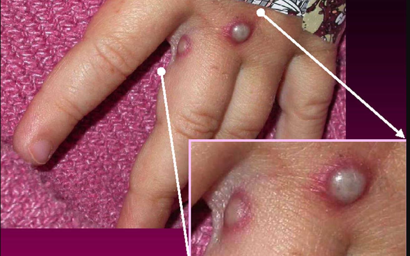 وبحسب المنظمة "يكون وقع الطفح أشدّ على الوجه (في 95% من الحالات) وعلى راحتي اليدين وأخمصي القدمين (75%). ويتطوّر الطفح في حوالي 10 أيام من حطاطات بقعية (آفات ذات قواعد مسطّحة) إلى حويصلات (نفاطات صغيرة مملوءة بسائل) وبثرات تليها جلبات قد يلزمها ثلاثة أسابيع لكي تختفي تماما". ولفت الدليل إلى عدم وجود "أدوية أو لقاحات مُحددة متاحة