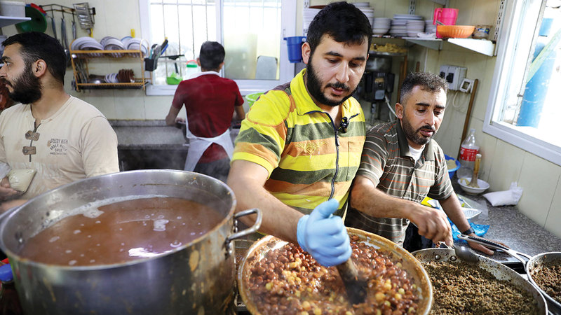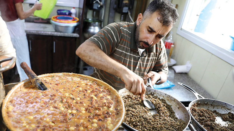 يبدأ عمل الفلسطيني مجيد جولاني ومساعدوه منذ ساعات الصباح الأولى لتحضير متطلبات واحدة من أكثر الأكلات الشعبية شهرة في البلاد.