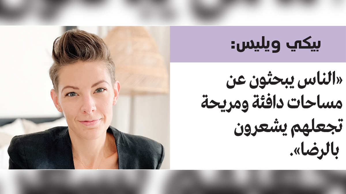 تقول مؤسسة استوديو «فان أوليفر للديكور» بيكي ويليس: «لمنازلنا تأثير كبير على مزاجنا ورفاهنا، فقد صار الناس يبحثون عن مساحات دافئة تشعرهم بالرضا. وهناك اتجاه نحو الاعتماد على الدرجات اللونية الأرضية في المفروشات ما يعكس الانسجام والصفاء والتناغم مع الطبيعة، ولقد ظهرت الألوان والخامات التي تذكرنا بالطبيعة خلال هذا العام، حيث يتطلع الجميع إلى الاستفادة من التأثير الهادئ للأماكن الطبيعية».