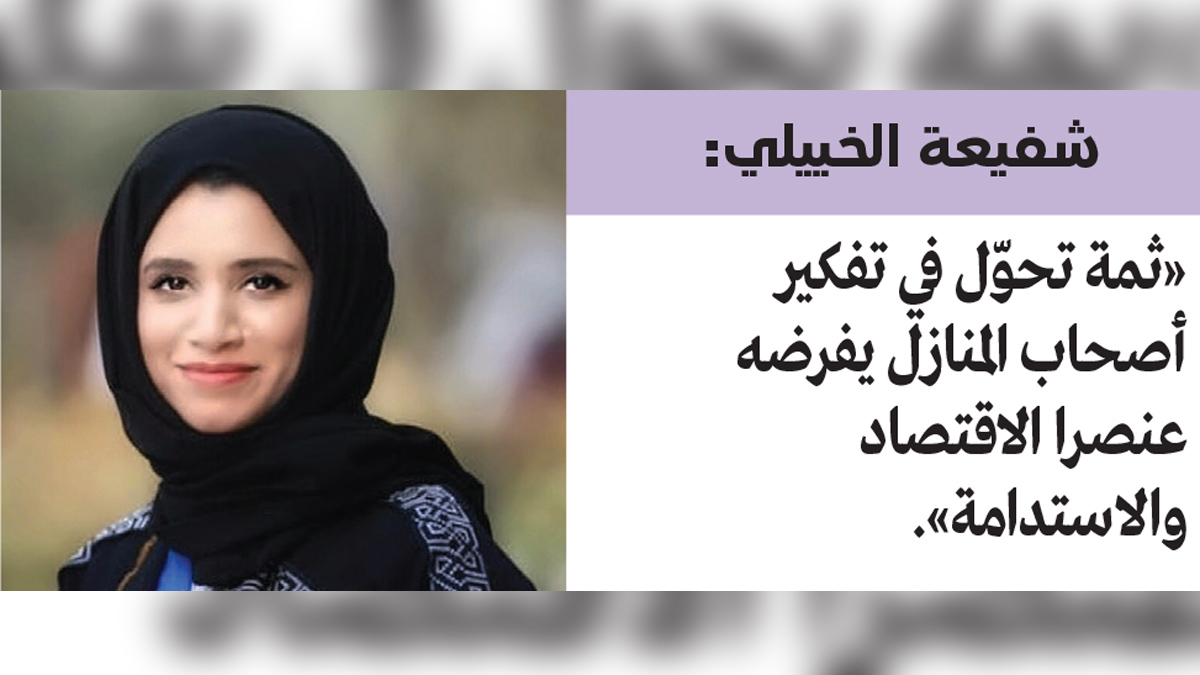 كما أنه يعطي مظهراً مريحاً وفاخراً ورائعاً. أما الاتجاه الآخر فهو استخدام السجاد الإيراني الصنع الذي أصبح يستخدم في صناعة الأثاث والمفروشات الناعمة. ولا تغفل شفيعة عن وجود تحوّل في تفكير أصحاب المنازل يفرضه عنصرا الاقتصاد والاستدامة.