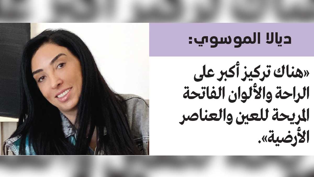 وتؤمن رئيس التصميم، والشريكة في شركة «كولايد» ديالا الموسوي، أن الموضة الأساسية لهذا العام هي الرفاهية في التصميم الداخلي وقطع الأثاث، حيث تقول: «هذا لأن العديد منا لايزال يعمل من المنزل، ولذلك هناك تركيز أكبر على الراحة والألوان الفاتحة المريحة للعين والعناصر الأرضية المستوحاة من البيئة الطبيعية، كما نوصي دوماً بوجود العنصر النباتي».