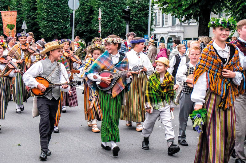 وامتلأت شوارع ريغا بفتيات صغيرات يرتدين فساتين تعود تصاميمها إلى العصور الوسطى ويزيّن ضفائرهن بأكاليل من الورود، ورجال ينتعلون أحذية جلدية ويضعون مجوهرات برونزية إسبارطية التصميم.