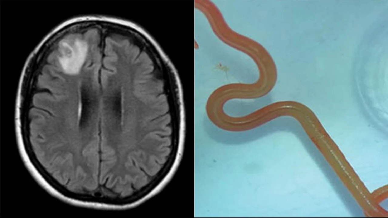 أول حالة لدى البشر.. أطباء يستخرجون من دماغ امرأة دودة حية طولها 8 سم توجد عادة بالثعابين