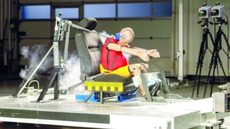 ويضاف إلى هذا أن انكسار الخطافات والأقفال المصنوعة من البلاستيك والمعدن يشكل خطراً إضافياً للإصابة. وتتطلب أحزمة الحوامل أيضاً شريطاً إضافياً بمقدار 30 سم، ولهذا السبب كان الحزام العادي أقل إحكاماً، وبالتالي تحركت الدمى إلى الأمام أكثر عند وقوع اصطدام.