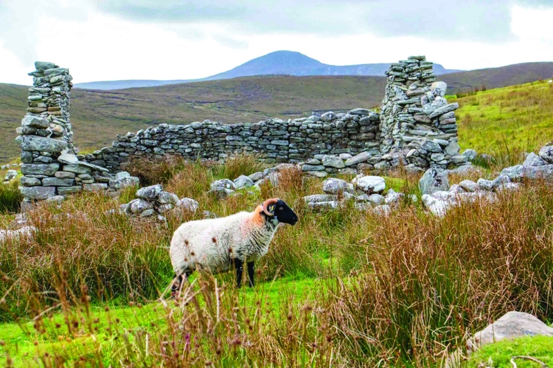 الأغنام في جزيرة أكيل لا تهتم بالمشاهد الطبيعية البديعة على البطاقات البريدية، ودائماً لها «أولوية المرور».