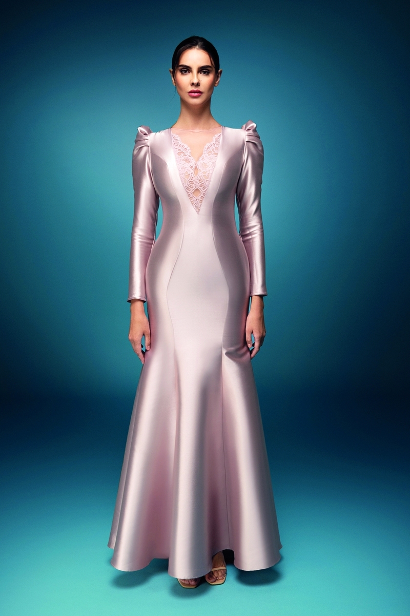 واشتمل اختيار الأقمشة على قماش من حرير ميكادو الخالص الأنيق والناعم والتول الساتان وأنسجة الكريب المطاطية، فيما تميزت إبداعات المجموعة بتصميمات الكورسيه، المصممة بعناية لإضفاء المزيد من الأنوثة والسحر، وتعرض القطع المختارة أيضاً تطريزاً مشغولاً بعناية فائقة، وهو ما يضفي لمسة من الرقي.