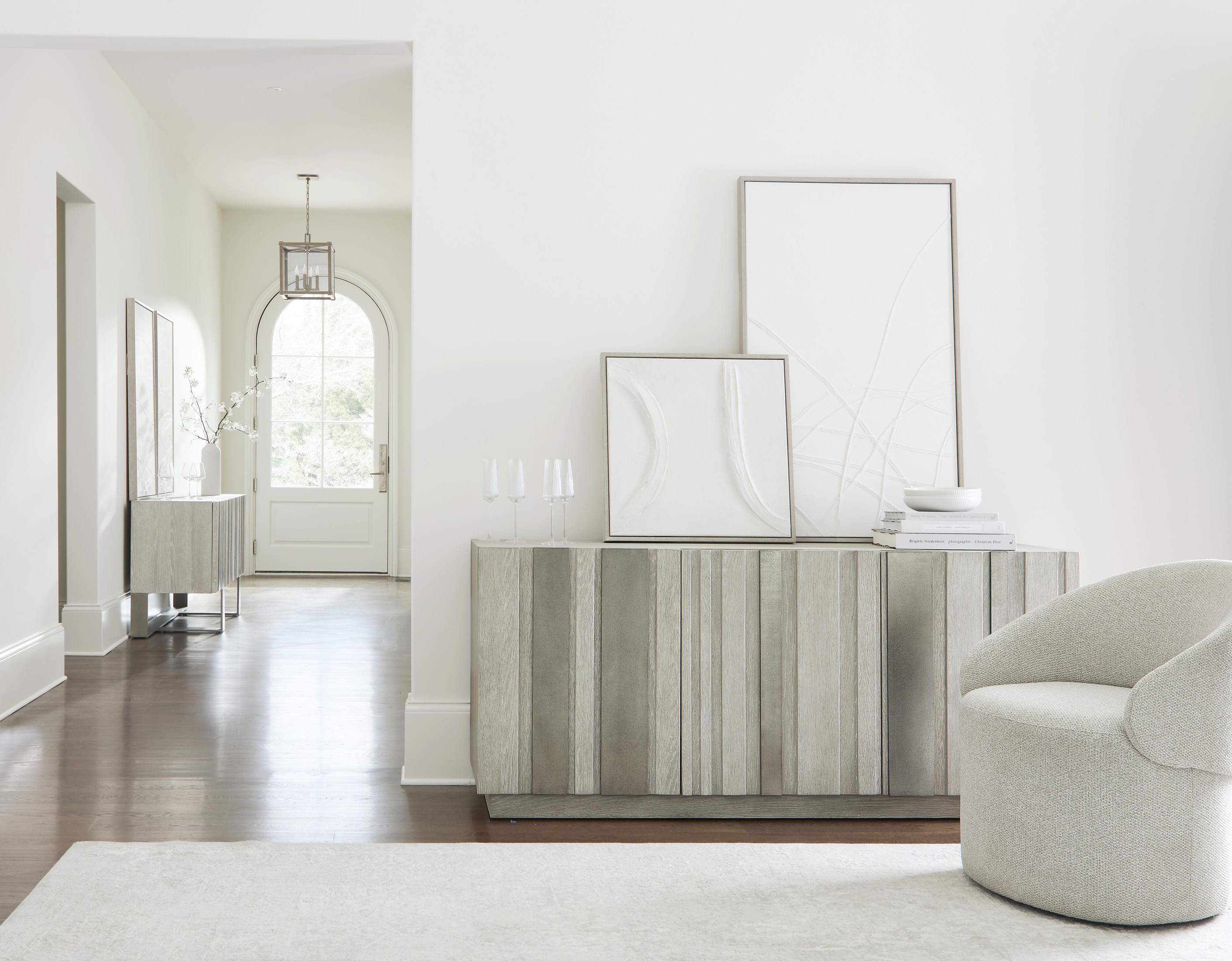 من قماش الكتان بلونه الكريميّ، مروراً بتدرّجات اللون الرمادي الدافئة، وصولاً إلى تدرّجات البني المائل إلى الرماديّ، إلى جانب الأخشاب الترابية اللون والدافئة الحضور وذات التفاصيل الدقيقة المنفّذة يدوياً، تفرض تصاميم "برنهاردت" حضورها بثقةٍ، وتُعبّر عن ذاتها من دون تكلّف. الخطوط الانسيابية والمواد الطبيعية، مثل خشب البلوط والرخام والصوف والجلد، والملمس الصافي والحضور المشبع بالهدوء، عوامل تضفي لمسةً راقيةً حتى على المساحات القليلة الحجم في كل بيت. التزاماً منها بقيمها الجمالية الراسخة، تُنفذ "برنهاردت" التفاصيل الدقيق لكل قطعة بإتقانٍ مذهل، مع منحنياتٍ انسيابية تجسد مفهومها الخاص للفخامة الفعلية والراقية.