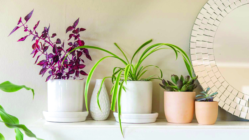 على الرغم من الطقس الحار، إلا أن النباتات الخارجية المتنوعة المناسبة للمناخ والداخلية تضيف طابعاً من الحياة الصحية والهدوء للمساحات الشخصية، وينصح في هذه الخطوة باختيار نباتات قوية ومقاومة للحرارة مثل الصبار، ونباتات اليشم وقصب الدامب، ونبات المطاط، وما إلى ذلك، التي تحتاج إلى عناية بسيطة، وتعيش لفترات طويلة ويمكن تنسيقها في أوان أنيقة وبألوان مناسبة لألوان ديكورات البيت، لتضيف بعداً جمالياً خاصاً، وتجمع الكثير من الدراسات على الدور الذي تلعبه المساحات أو اللمسة الخضراء الطبيعية في المنزل بالصحة العامة وحتى النفسية، ولا تتطلب النباتات مساحات منازل كبيرة.