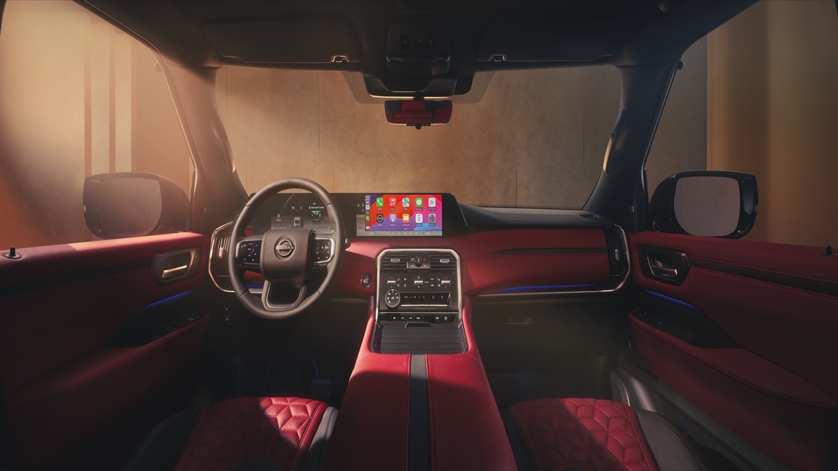 كما تم تجهيز المقصورة أيضاً بشاشة Monolith بقياس 6ر28 بوصة، وهي عبارة عن منظومة متكاملة من شاشتين بقياس 3ر14 بوصة لكل منهما، مدمجتين بالكامل مع جوجل؛ حيث يتم النظر إلى سهولة الاتصال والتخصيص بوصفهما بنية أساسية لا ميزة إضافية. ولا يتوقّف حضور تطبيق MyNISSAN عند حدود المقصورة، بل يرافق قائد السيارة أينما كان في العالم.