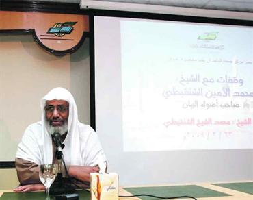 ألقى الشيخ محمد الشيخ الشنقيطي محاضرة، خلال زيارته لمركز جمعة الماجد للثقافة والتراث في دبي، أعرب فيها عن تقديره لدور المركز، في نشر العلوم والثقافة وخدمة الباحثين في شتى أصقاع الأرض. وتطرق إلى الحديث عن بلاد شنقيط، وطريقتهم في تلقي علوم الشريعة واللغة والفنون، وكيف كان الصبي يحفظ القرآن الكريم قبل أن يبلغ التاسعة من العمر، ثم يحفظ المتون المتعددة في الفقه واللغة والحديث والمنطق وغيرها.