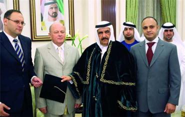 وتسلم سموه الشهادة، أول من أمس، خلال استقباله في قصره في زعبيل وفد جامعة كييف الذي ضم عضو البرلمان الأوكراني مستشار رئيس الوزراء السيد فلاديسلاف كاسكيف الذي سلم سمو الشيخ حمدان بن راشد آل مكتوم دعوة رسمية من رئيس الوزراء الأوكراني لزيارة كييف، إذ قبلها سموه شاكرا ومؤكدا اتمام الزيارة في المستقبل القريب. وضم الوفد البروفيسور أناتولي بروتشنيك نائب رئيس جامعة كييف، حضر حفل تسليم الشهادة سمو الشيخ راشد بن حمدان بن راشد آل مكتوم، وسمو الشيخ سعيد بن حمدان بن راشد آل مكتوم، وسمو الشيخ مكتوم بن حمدان بن راشد آل مكتوم، ووزير الصحة الدكتور حنيف حسن علي، ووزير التربية والتعليم حميد محمد عبيد القطامي، إلى جانب عدد من أعيان البلاد وكبار المسؤولين والقيادات الجامعية في الدولة.