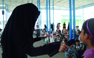 نظمت وزارة الثقافة والشباب وتنمية المجتمعأ قسم المبادرات المجتمعية مكتب العين، مجموعة ورش تعريفية حول أنشطة الوزارة وأهم انجازاتها ومبادراتها المجتمعية وعطائها المتميز، الذي يهدف الى نشر القيم الايجابية بين أفراد المجتمع وتشجيع الإبداعات في مختلف المجالات ورفع مستوى الوعي الثقافي المجتمعي. وطرحت الوزارة مجموعة من المسابقات الثقافية والتراثية خلال النصف الاول من أبريل الجاري، من خلال البرنامج الإذاعي في الطابور الصباحي الخاص لكل مدرسة من المدارس المشاركة وهي: مدرسة العين للتعليم الأساسي والثانوي، ومدرسة الطيبات للتعليم الأساسي، ومدرسة الهمّة للتعليم الأساسي، وذلك بهدف تعريف طلبة مدارس منطقة العين التعليمية بتراث وتاريخ الإمارات، وجهود وزارة الثقافة والشباب وتنمية المجتمع في تعزيز الهويّة الوطنية والمحافظة عليها. وتأتي هذه الفعالية ضمن برامج الوزارة للتوعية وتطوير الذات، وتطبيقاً للخطة الاستراتيجية الرامية إلى تحقيق رؤيتها في تنمية مجتمع مثقف ورفع مستوى الوعي الثقافي المجتمعي.