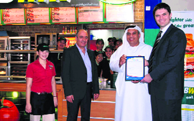 حصلت سلسلة مطاعم «صب واي» في الإمارات، على شهادة منفذ معتمد في نظام «مينيو ـ سيف»، نظام إدارة سلامة الأغذية المتوافق مع برنامج «تحليل مصادر الخطر ونقاط التحكم الحرجة»، وشهادة مدير معتمد لنظام «مينيو ـ سيف». وقام مدير هيئة اعتماد معايير «مينيو ـ سيف» ديف شانون، بمنح وكيل «صب واي» في الدولة مروان عبدالملك الحمر، ومدير عام «صب واي» جان شديد، شهادة خلال حفل خاص أقيم في فرع «صب واي» بمدينة دبي للإنترنت.