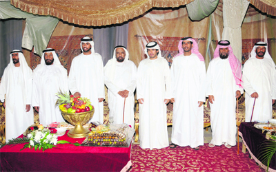 حضر الشيخ محمد بن نهيان بن مبارك آل نهيان، حفل عشاء بمناسبة زفاف علي مسلم بن حمرور العامري إلى كريمة المرحوم سهيل بن حمرور العامري، وسالم سهيل بن حمرور إلى كريمة المرحوم مسلم بن حمرور العامري.
