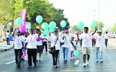 أسهمت مجموعة من موظفي شركة الإمارات للاتصالات المتكاملة «دو» في مسيرة الماراثون الوردي، الحدث الخيري الذي نظم أخيراً في دبي، بهدف زيادة الوعي وجمع التبرعات من أجل سرطان الثدي. وتبرع الموظفون المشاركون لمصلحة الأبحاث الخاصة بسرطان الثدي وجهود زيادة الوعي بجوانب المرض، واصطحبوا أفراد عائلتهم وأصدقائهم للمشاركة في الحدث. وقالت النائب التنفيذي للرئيس للإعلام والاتصال في «دو» هالة بدري: «نشجع الموظفين في (دو) على الإسهام في جميع الأنشطة الخيرية، ونشعر بمسؤوليتنا تجاه المجتمع، ونأمل أن تُسهم هذه المبادرات في تقديم الدعم والمساندة للمرضى».