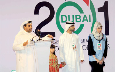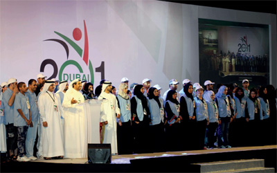 اختتم 120 متطوعا ومتطوعة أعضاء جمعية «متطوعي الإمارات» مشاركتهم التطوعية البارزة في التطوع الرياضي العالمي في الألعاب العالمية للكراسي المتحركة والبتر ،2011 التي ينظمها نادي دبي للرياضات الخاصة التي اختتمت أعمالها بنادي ضباط شرطة دبي وأقيمت برعاية سمو الشيخ حمدان بن محمد بن راشد آل مكتوم، ولي عهد دبي رئيس المجلس التنفيذي رئيس مجلس دبي الرياضي وبحضور رئيس الاتحاد الدولي للكراسي المتحركة والبتر بول ديباس، والقيادات الرياضية بالدولة.