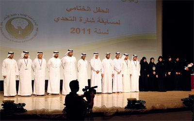 أقامت إدارة الإقامة وشؤون الأجانب في دبي الحفل الختامي لمسابقة «شارة التحدي»، برعاية سمو الشيخ ماجد بن محمد آل مكتوم، رئيس هيئة دبي للثقافة والفنون، وذلك في ندوة الثقافة والفنون، أول من أمس، وتم تكريم الفائزين في فئات المسابقة التي تهدف إلى اكتشاف مواهب طلاب المدارس والجامعات وتعزيز ثقافة التفكير الإبداعي.