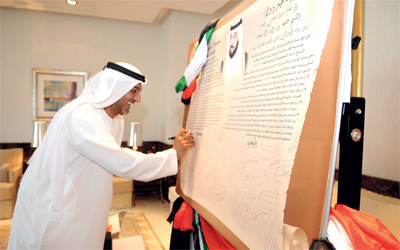 وقع سمو الشيخ أحمد بن سعيد آل مكتوم، الرئيس الأعلى لمجموعة طيران الإمارات، رئيس مجلس إدارة مركز راشد لعلاج ورعاية الطفولة، رئيس اللجنة العليا لجائزة الشخصية الإنسانية، على وثيقة العهد والوعد والولاء لصاحب السمو رئيس الدولة. حضر التوقيع سمو الشيخ محمد بن مكتوم بن جمعة آل مكتوم، والشيخ أحمد بن دلموك آل مكتوم من أعضاء مجلس إدارة المركز، وأحمد هاشم خوري مؤسس المركز.