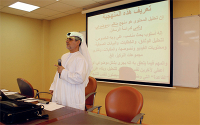 نظم مركز الشارقة للتدريب الإعلامي التابع لمؤسسة الشارقة للإعلام ورشة عمل في البحث الإعلامي استمرت يومين، وحاضر فيها الخبير الإعلامي الدكتور إبراهيم راشد الحوسني. واستهدفت الورشة تطوير الجانب التطبيقي لدى الباحثين والمعدين العاملين في قنوات المؤسسة. وتم خلال الورشة التي شارك فيها 15 باحثاً ومعداً التطرق إلى الجوانب النظرية الأساسية في عملية البحث، إلى جانب المهارات الأساسية والمتطلبات العامة للبحث ووسائله.