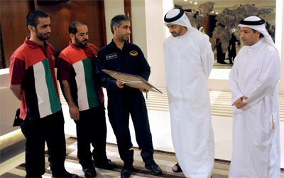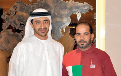 عبدالله بن زايد يستقبل فريق منطاد الإمارات