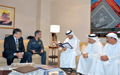 وهنأ سموّه الفريق على الفكرة الخلاقة الجديدة في مشروع تصنيع منطاد علم الإمارات، إذ وقّع على التصميم الخاص للمنطاد.