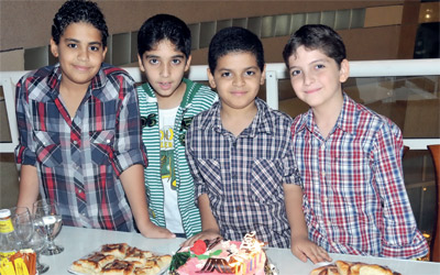 في جو مفعم بالبهجة والسرور، احتفل سيف محمد حامد، بعيد ميلاده العاشر، بمشاركة اخوته ومجموعة من زملائه وأصدقائه، وذلك بمطعم «يا ليل يا عين»