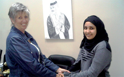 د. منى الأنصاري، والمشرفة الإدارية خلود الأنصاري، الطالبة مقدرتين انجازها الدولي الرياضي المشرف.