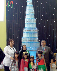 دشنت مديرة مدرسة وروضة الشروق الخاصة في دبي، فدوى حطاب، مجسم برج خليفة، الذي تم تشييده بأيادي براعم الروضة، وبإشراف مديرة قسم رياض الاطفال سمر سمارة. وبلغ ارتفاع المجسم أربعة أمتار، واستخدم الاطفال في بنائه 1562 عبوة بلاستيكية. وذكرت حطاب أن المبادرة تأتي تشجيعاً للحفاظ على البيئة، من خلال لفت الانتباه إلى ضرورة إعادة تدوير المواد الاستهلاكية عموماً والمواد البلاستيكية خصوصا. وأكدت أهمية تعزيز الوعي البيئي لدى الأطفال، والتأكيد على ترسيخ السلوك الإيجابي تجاه البيئة.