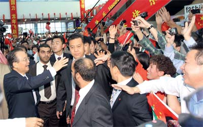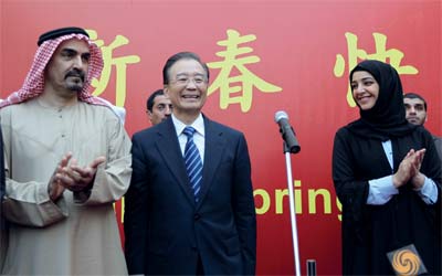 من جانب آخر، زار جيا باو «سوق التنين الصيني» التجاري السياحي بمنطقة الورسان، وتجوّل وسط حشود كبيرة من أبناء الجالية الصينية في الدولة، الذين رحبوا به، وتحدث إلى عدد من أصحاب المحال التجارية في السوق، الذي يعد الأكبر على مستوى منطقة الشرق الأوسط، إذ يضم نحو 3000 محل تجاري، ويلقى إقبالاً متزايداً من المتسوّقين المحليين والخليجيين. واطلع رئيس مجلس الدولة الصيني على التصاميم الهندسية للتوسعة المستقبلية للسوق، التي تصل إلى 175 ألف متر مربع، والذي سيتم إنجازه عام 2013 بهذا التطوّر المذهل للسوق، والذي يمثل الصناعة الصينية والمنتجات الصينية القديمة والحديثة.
