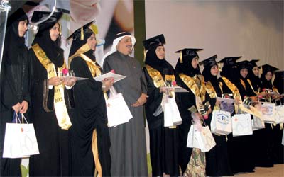 وكرم عميد الكلية الدكتور جاسم الشامسي، الخريجات بحضور وكيل الكلية الدكتور محمد حسن علي، وأمين السر العام لمجلس الجامعة مساعد العميد لشؤون الطالبات الدكتورة حبيبة الشامسي، ومساعد العميد لشؤون الطلاب الدكتور حسن المرزوقي، وعدد من أعضاء هيئة التدريس والإداريين، وجمع غفير من طالبات الكلية وآبائهن.