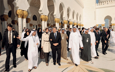وعبر غول عن إعجابه بجماليات العمارة الإسلامية الــتي تتجلى بوضوح على جدران الجامع وأعمدته، لافتاً إلى أن جامع الشيخ زايد الكبير يُعد معلماً بارزاً في أبوظبي والإمارات يؤكد عظمة العمارة الإسلامية وروعتها. وكان في استقبال الضيوف خلال زيارتهم الجامع مدير مركز جامع الشيخ زايد الكبير، يوسف العبيدلي.