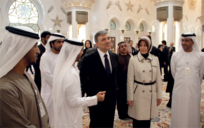زار الرئيس التركي عبدالله غول، أمس، جامع الشيخ زايد الكبير في أبوظبي، وذلك على هامش زيارته الرسمية للدولة، ورافق غول قرينته خير النساء، ووفد تركي ضم عدداً من المسؤولين الأتراك، برفقة وزير الاقتصاد رئيس بعثة الشرف، المهندس سلطان بن سعيد المنصوري.